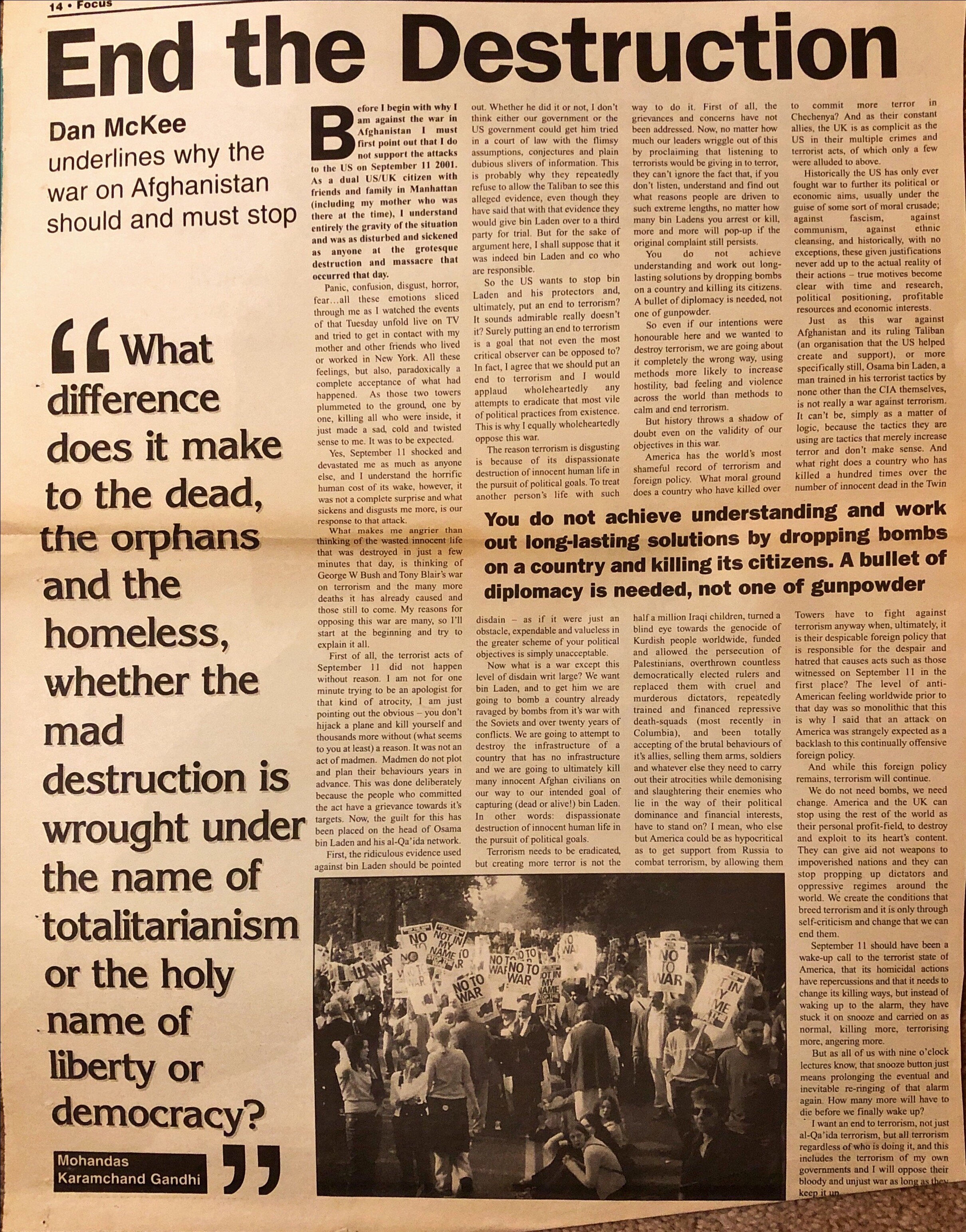 The student newspaper of Cardiff University was a cool place for an undergrad interested in politics and desperate to stop a war to send some ideas out into the world. Here are some cuttings from my time there…